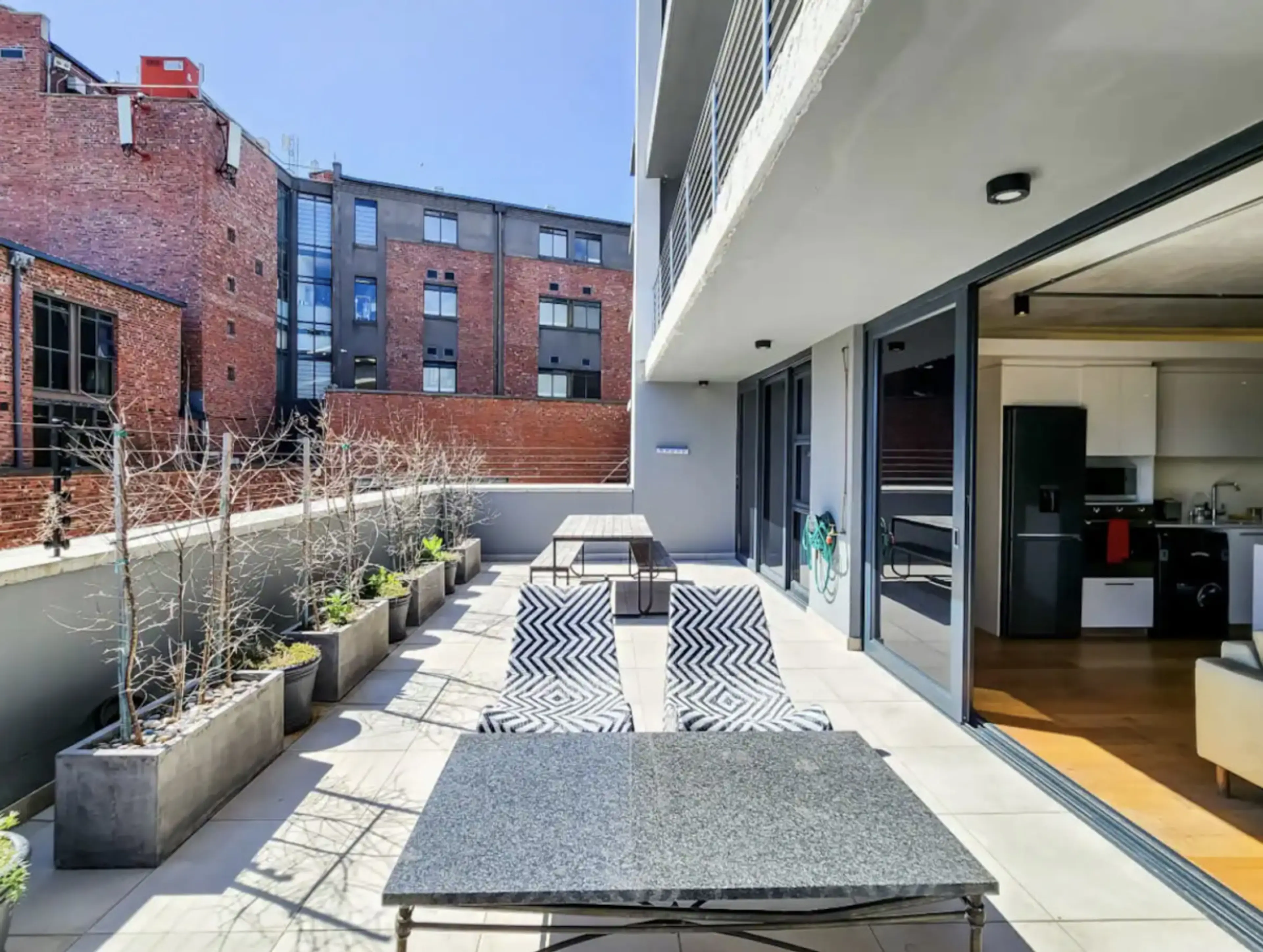 This charming two-bedroom apartment in the trendy suburb of De Waterkant, Cape Town, is bathed in natural light, creating a warm and inviting atmosphere. The open-plan living room and kitchen offer a spacious and modern setting, with the lounge area flowing seamlessly onto a patio. Its central locat...