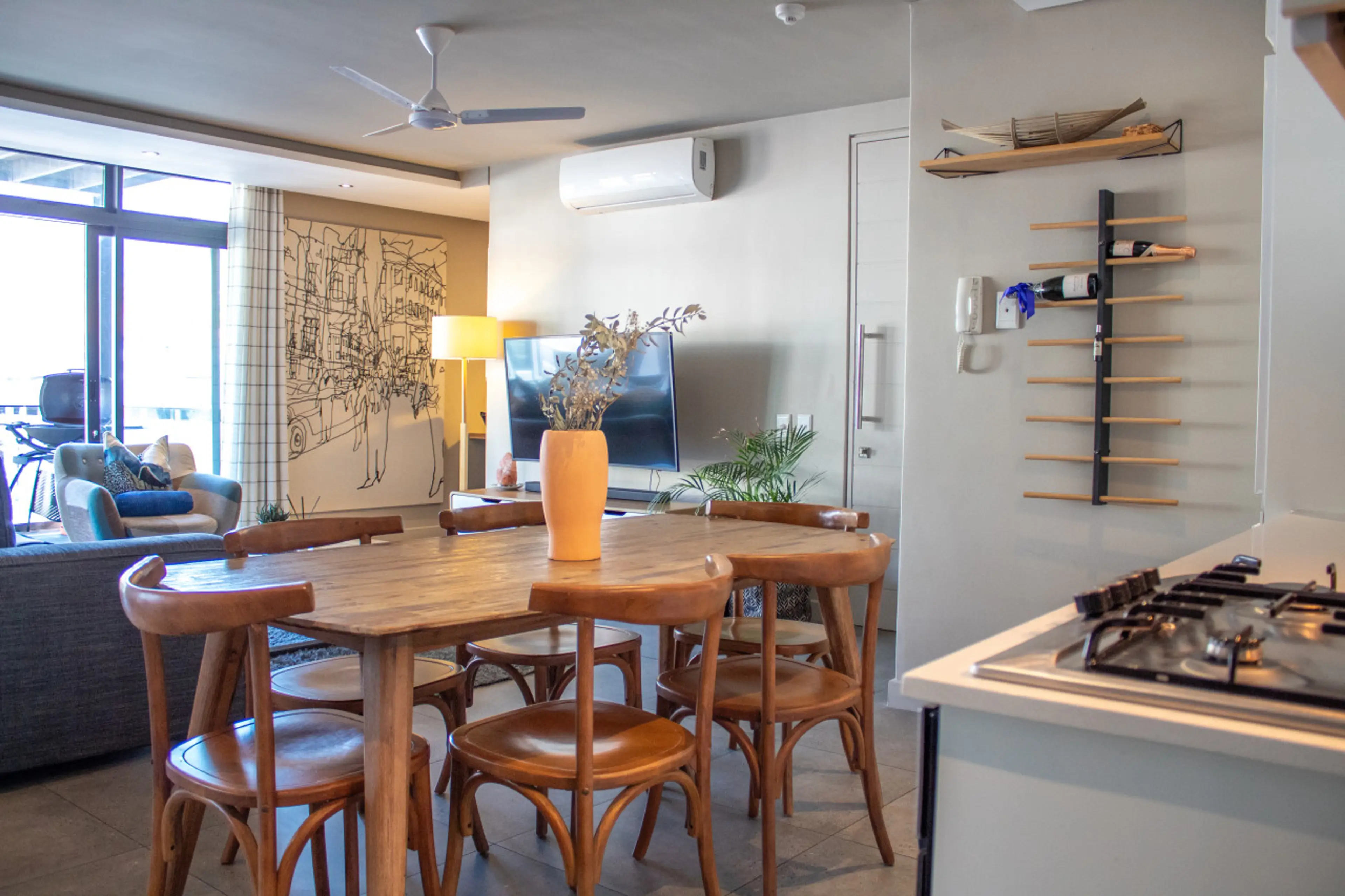 This freshly renovated two-bedroom apartment boasts beautiful views of Table Mountain from both bedrooms and the step-out balcony, where you’ll find a gas BBQ for relaxed evenings at home. It’s an ideal space for remote work, with fast internet and a dedicated work area to keep you productive. The m...
